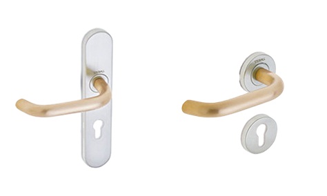Door handle with rose gold plate in Steriall®️ antimicrobial alloy. Elegant and discreet in nature, microbes deposited on its surface gets eliminated within minutes to provide a safer building. Combining elegance and practicality, this product sets out to achieve long-lasting antimicrobial conditions.